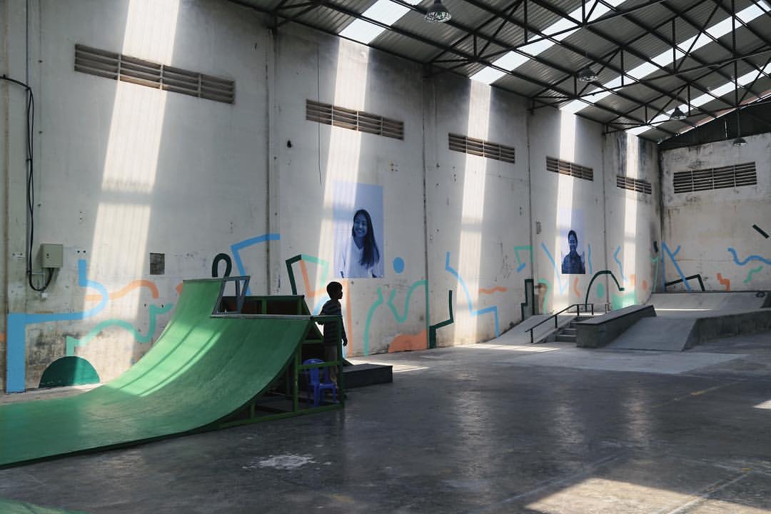 Skate Park A kid standing and watching and learning the other kids skating in the park at Factory Phnom Penh